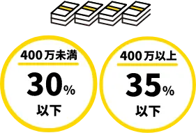 総返済負担率の基準は金融機関によって異なりますが、【フラット35】は「年収400万円未満では30%以下」、「400万円以上では35%以下」と基準を公表しています。