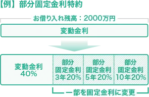 部分固定金利特約は、お借り入れ後、変動金利を金利タイプとしてご選択されている場合にご利用になれます。 - 変動金利→固定金利および固定金利適用期間満了後の変更は手数料無料。