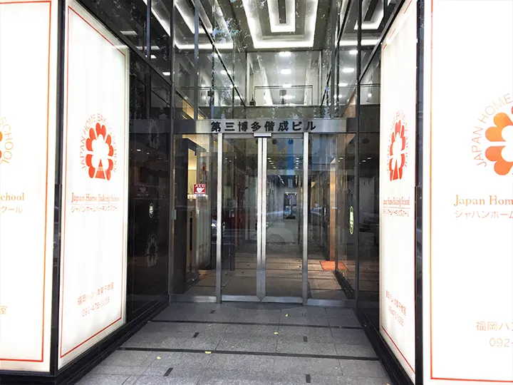 ヨドバシカメラの先の音羽交差点のはす向かいにあるファミリーマートの隣のビル「第三博多偕成ビル」の6階に当店はございます。
