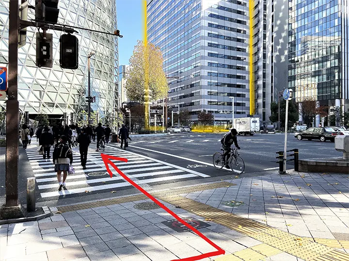 《店舗アクセス④》さらに横断歩道を渡り、左折してください。