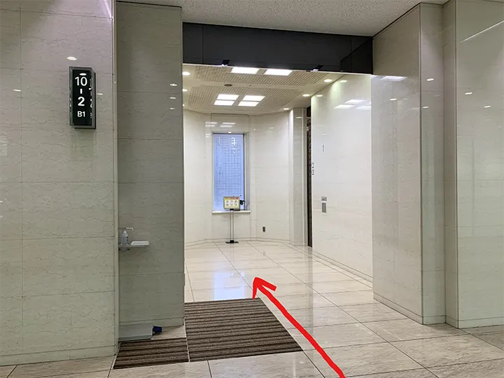 《店舗アクセス⑥》正面玄関を入り右側にお進みいただきますとエレベーターホールがございます。