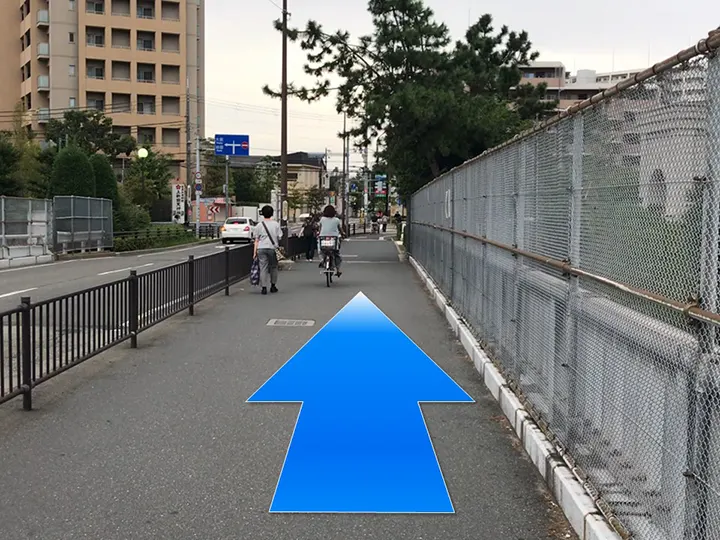 ≪店舗アクセスのご案内≫道なりに歩道橋を進みます。