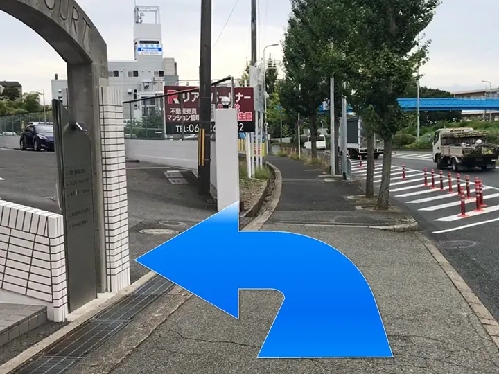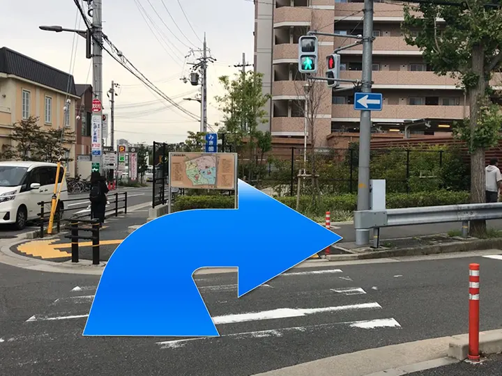 ≪店舗アクセスのご案内≫突き当たりの横断歩道を渡って右折します。