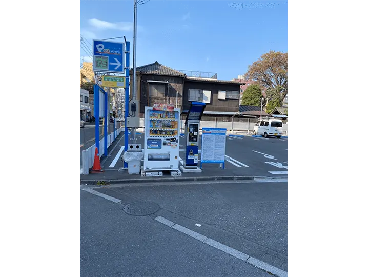 【店舗前 駐車場】お車でご来店の場合は、こちらのコインパーキングをご利用ください。店舗向かい側にある青い看板の「GSパーク」を目印にしてください。駐車料金の清算は、こちらでいたしますので必ずお申し出ください。